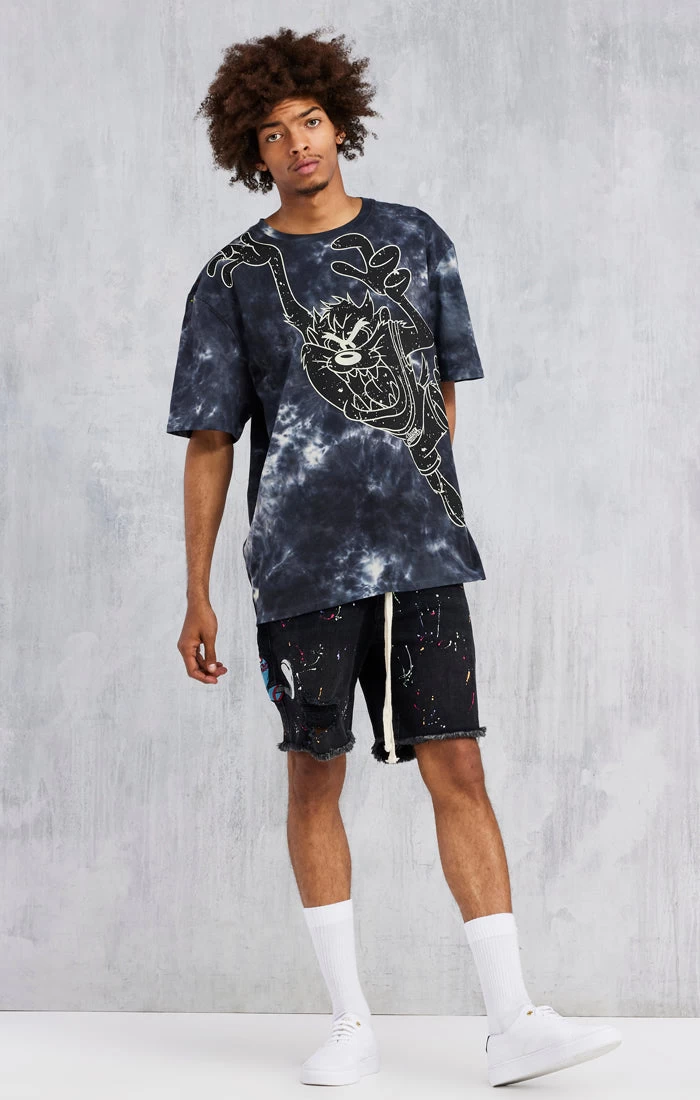 Black Space Jam x SikSilk Applique Distressed Denim Short