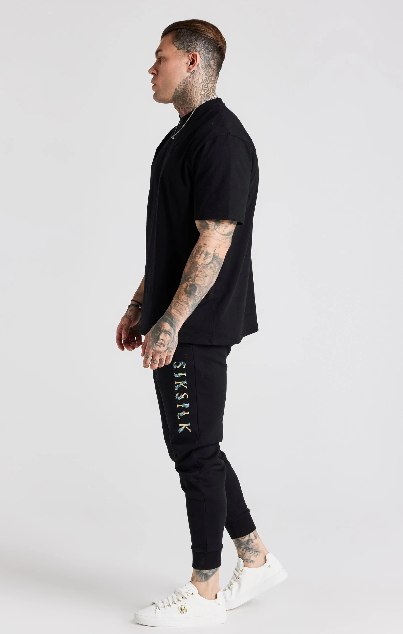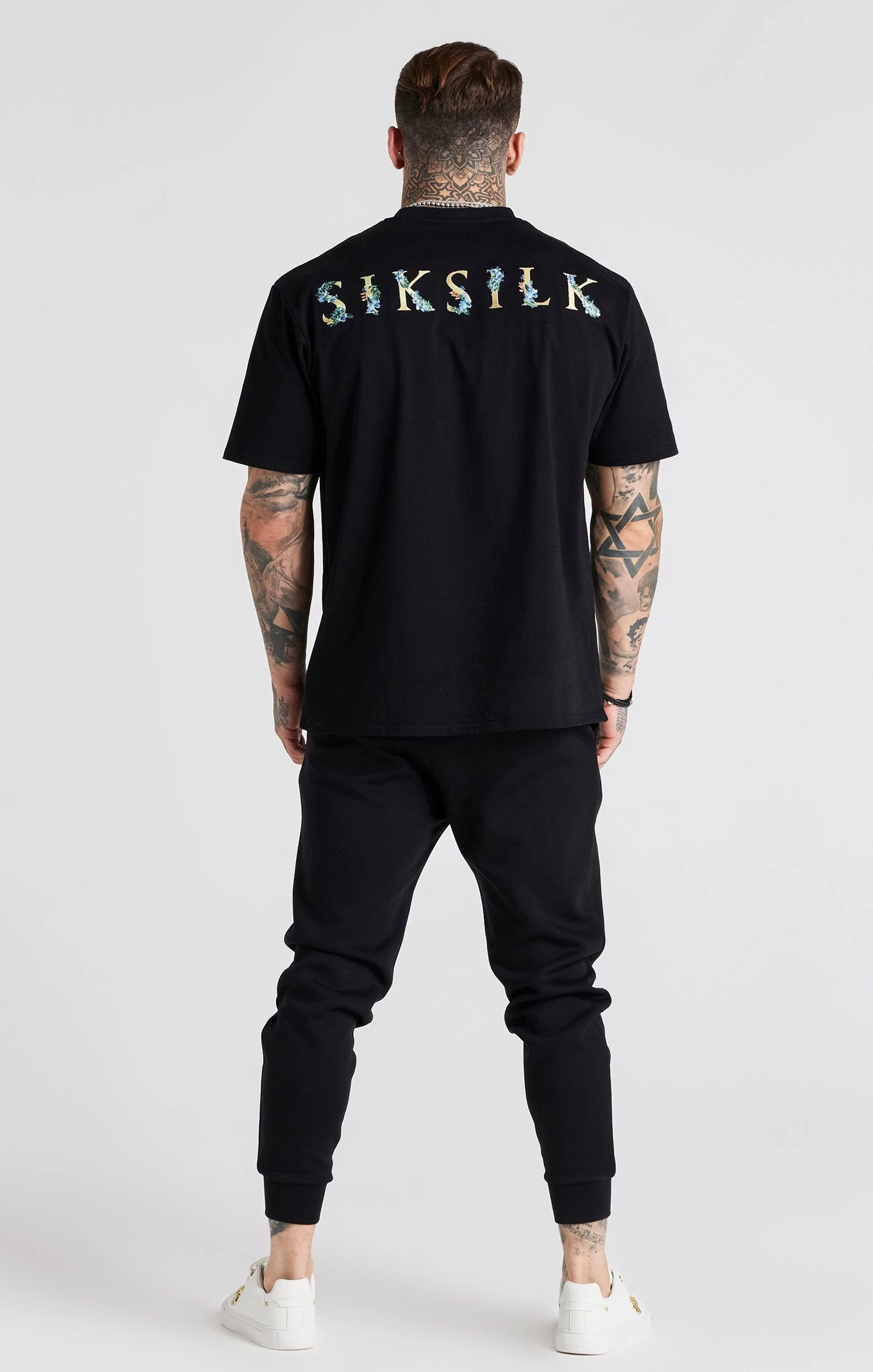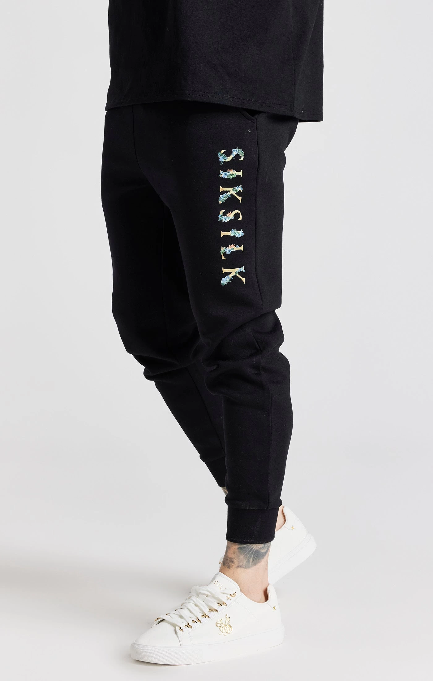 Black Floral Embroidered Cuffed Track Pant