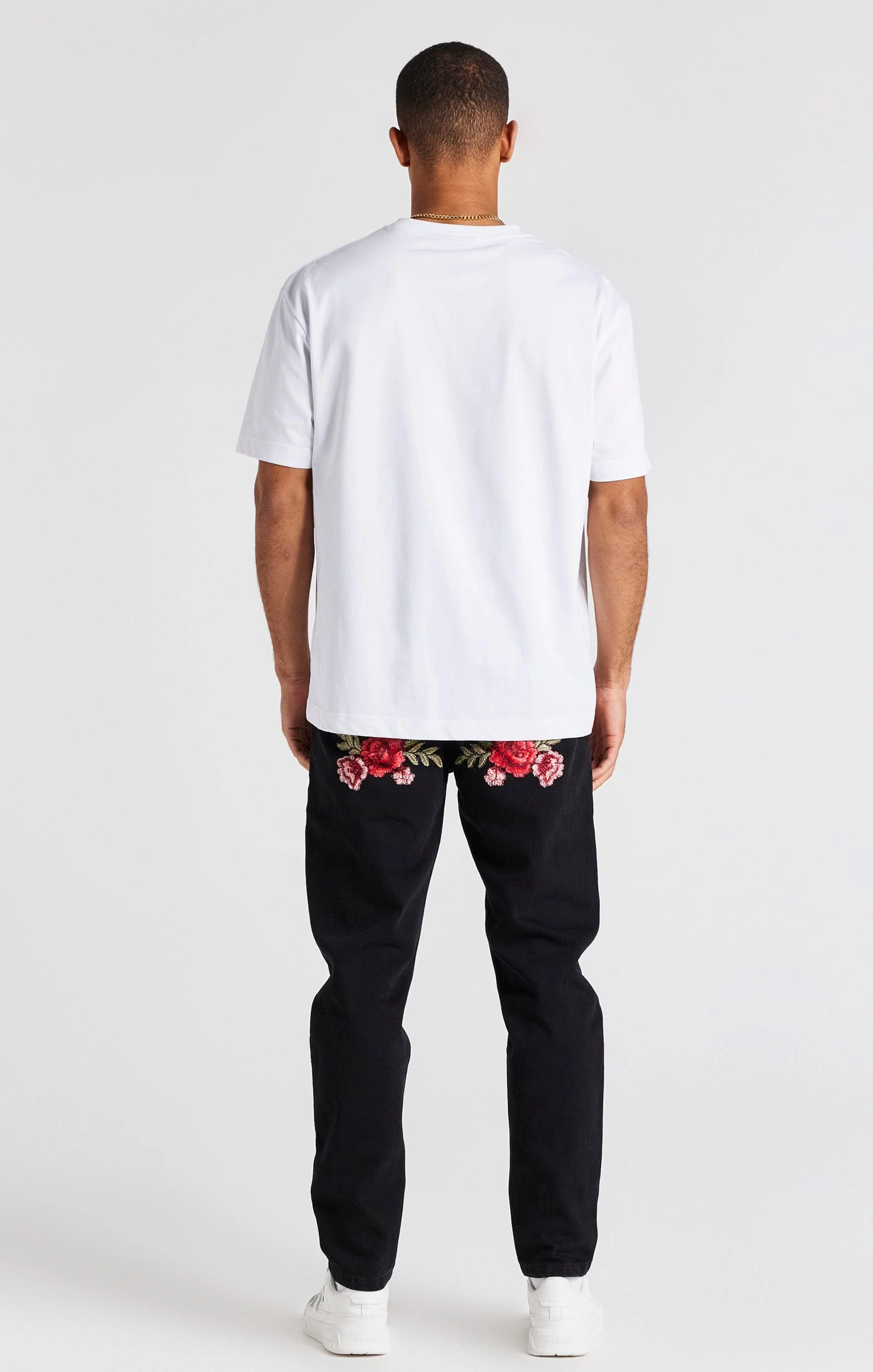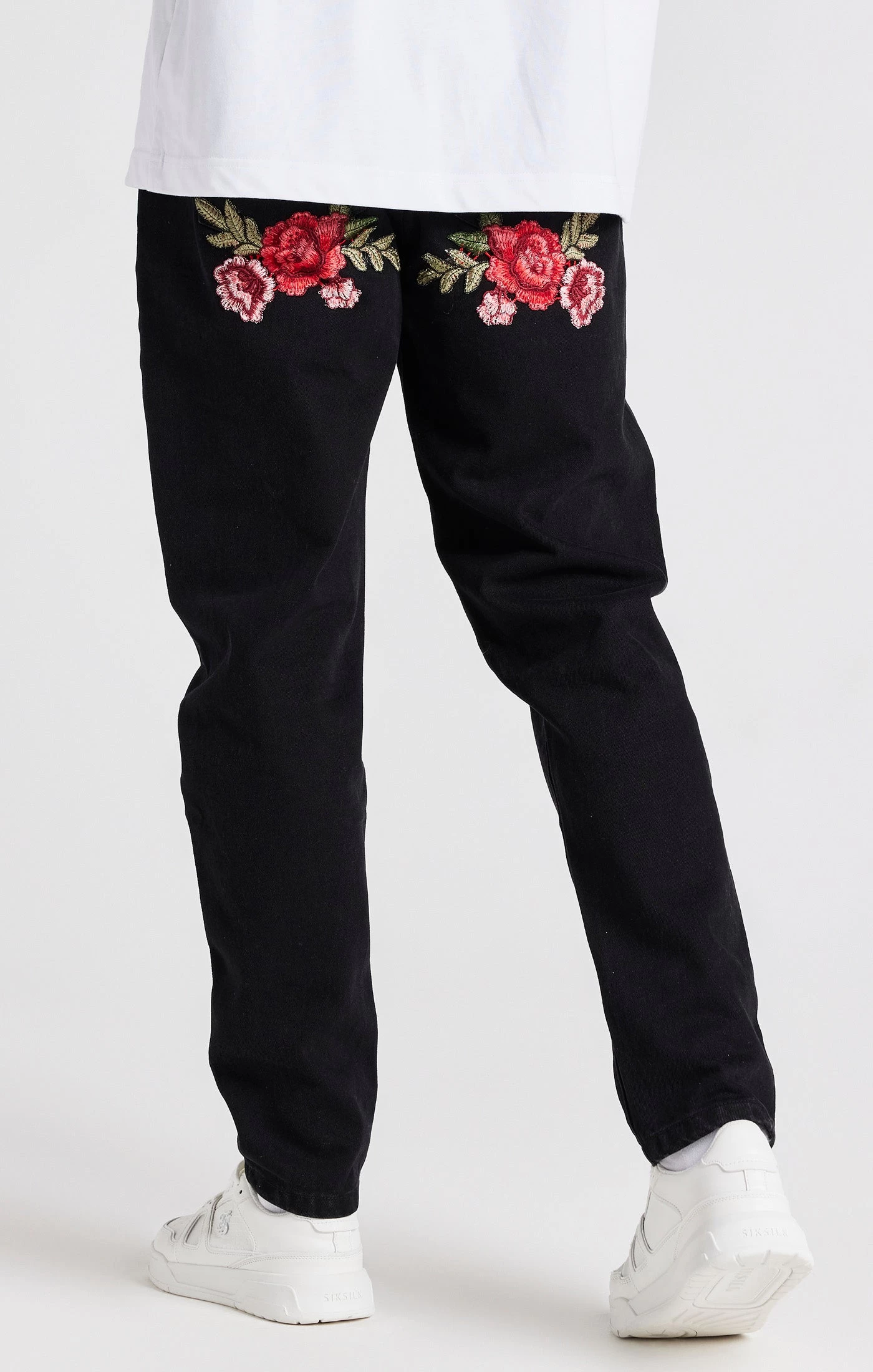 Step up your denim game with the Black Rose Straight Cut Denim from SikSilk. The relaxed fit and soft touch fabric make for comfortable wear, while the PU patch logo and embroidery detail add a touch of style. With a buttoned waist fastening and side entry pockets, these jeans are functional as well as fashionable. Upgrade your denim collection with the Black Rose Straight Cut Denim from SikSilk.