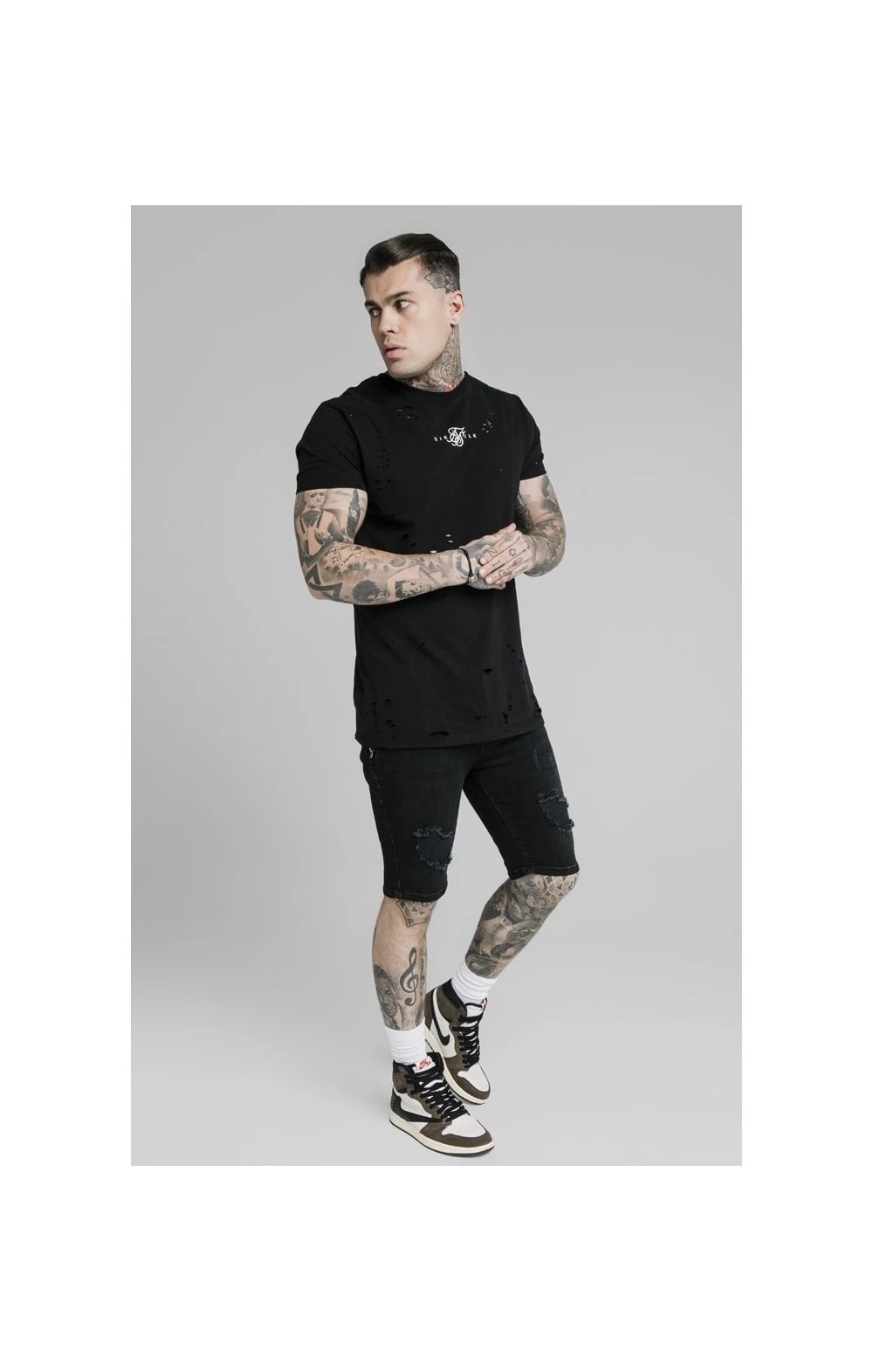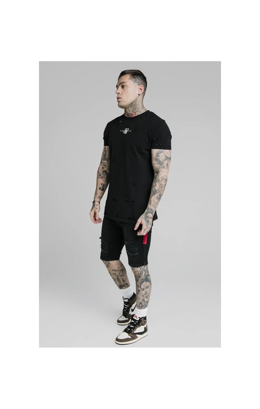 SikSilk Distressed Denim Flight Shorts – Washed Black