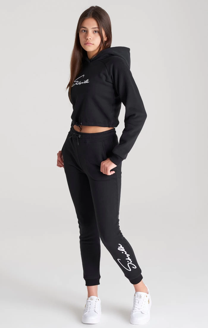 Girls Black Signature Cropped Hoodie