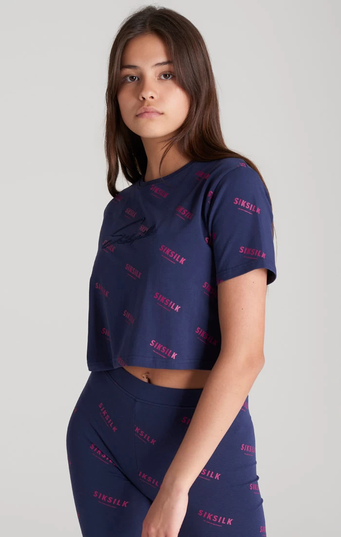 Girls Navy Signature Cropped T-Shirt
