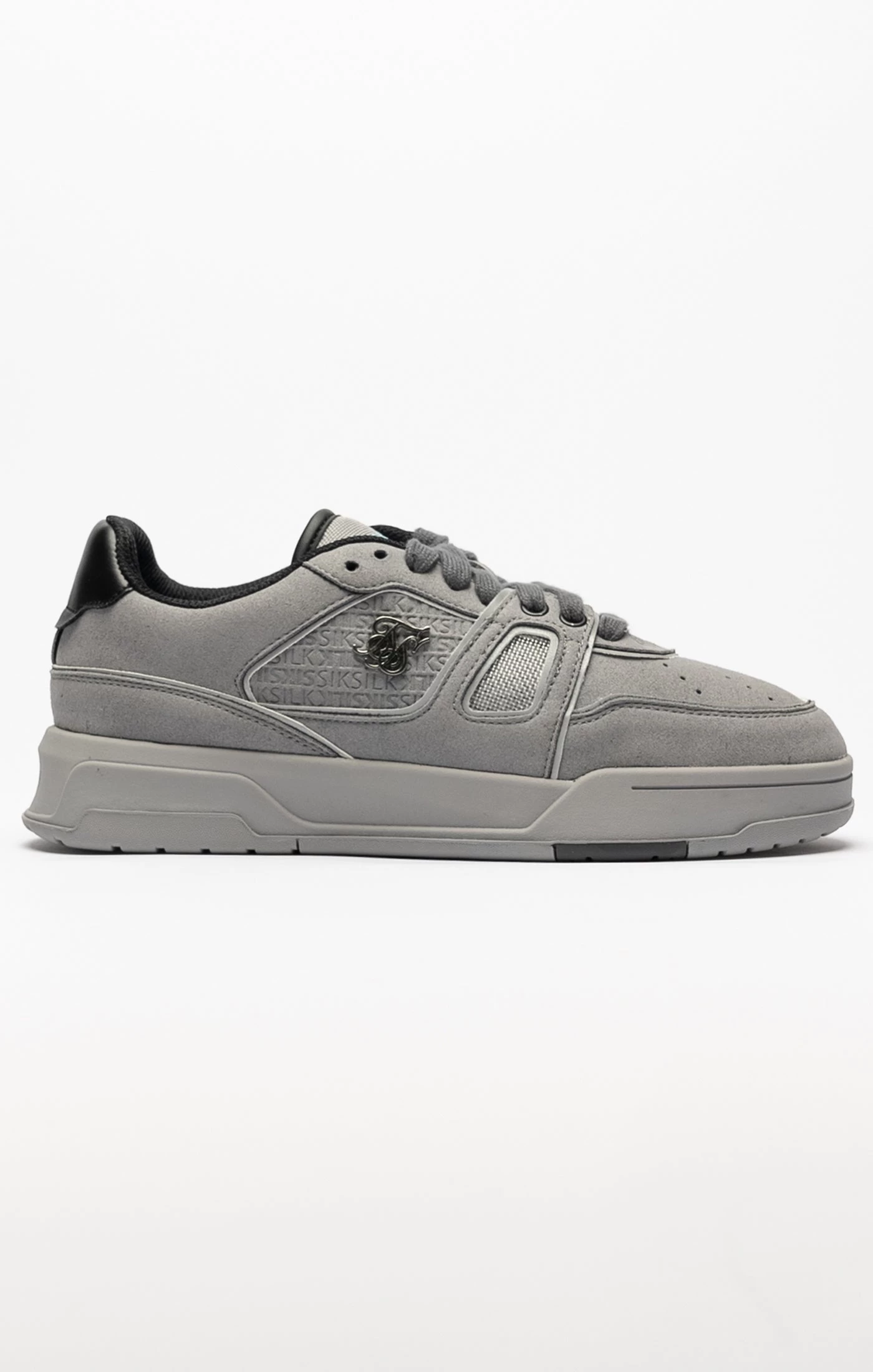 Grey Mixed Material Low Top Court Trainers