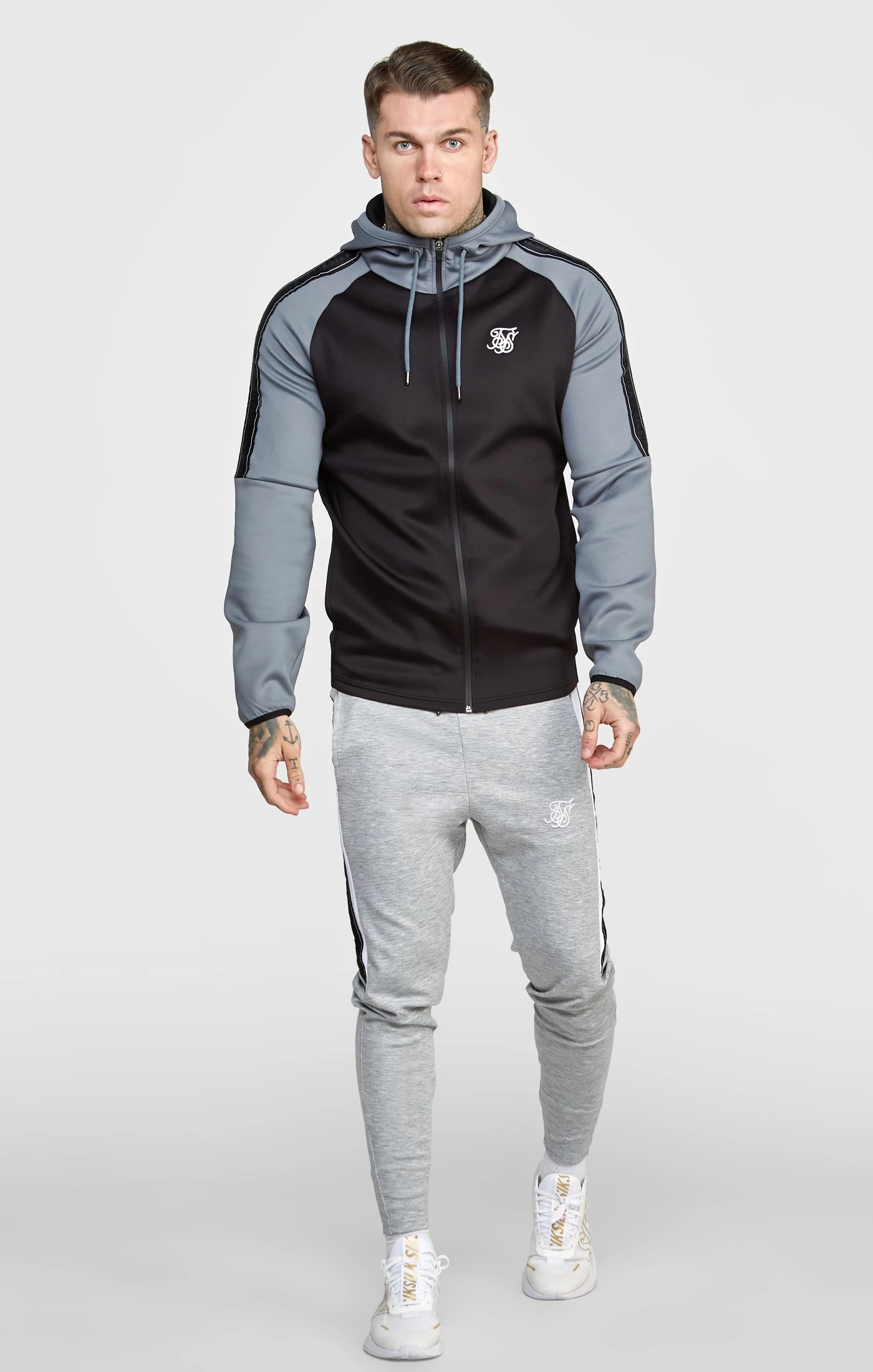Grey Taped Zip Thru Track Top