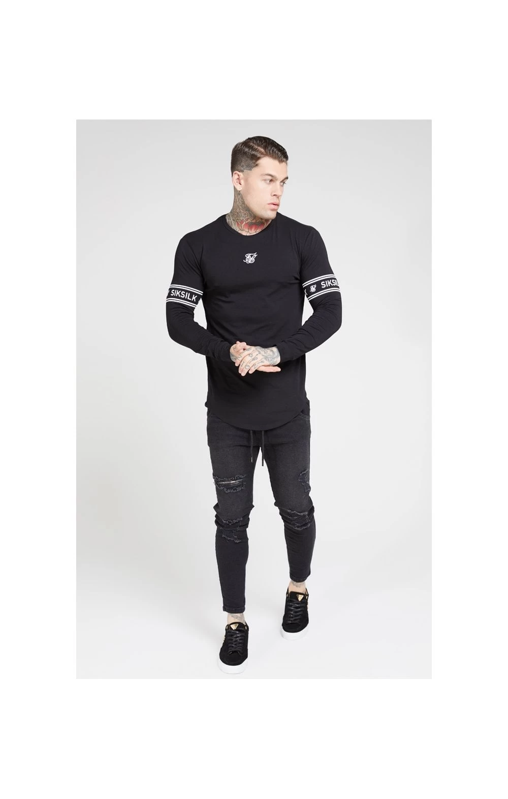 The SikSilk L/S Branded Gym Tee in Black is new to our SS/20 Collection. Pair this Tee with the any SikSilk Denims to achieve a fashionable look!