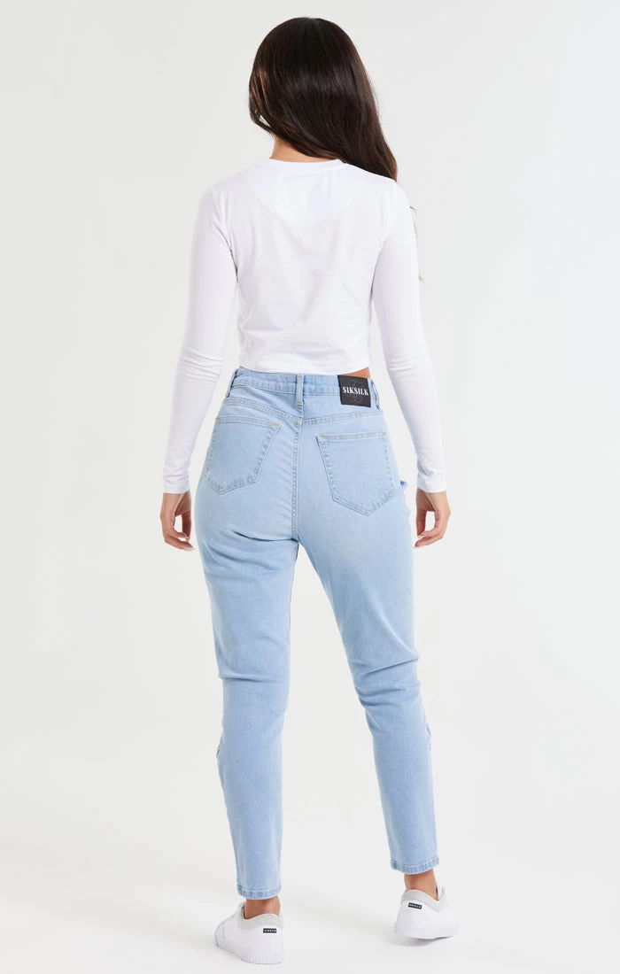 Light Blue Knee Rip Denim Mom Jean