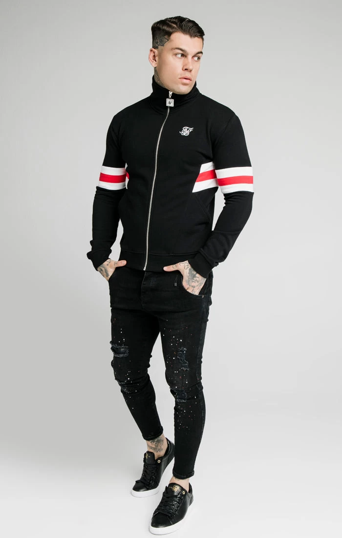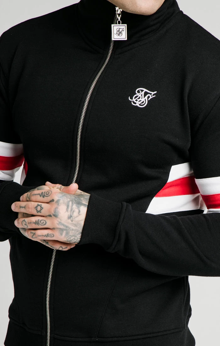 SikSilk Luxe Zip Through Funnel Neck Hoodie – Black, White & Red