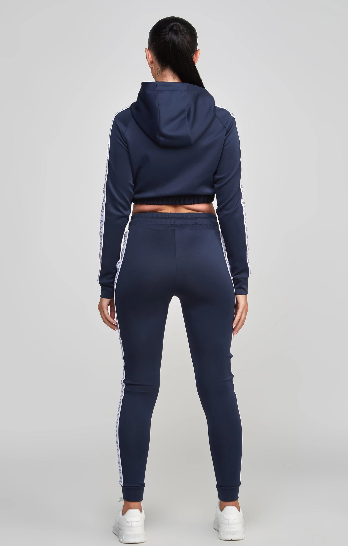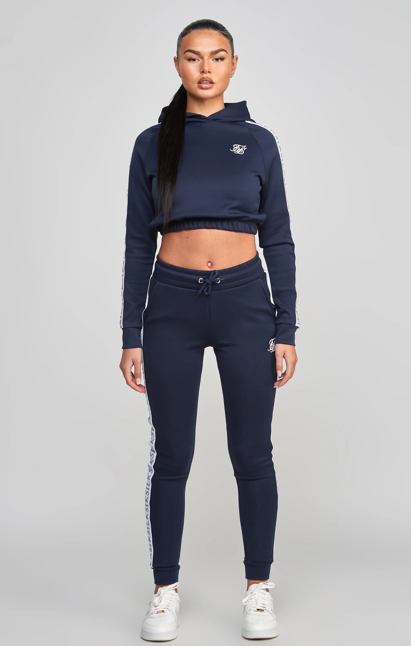 Navy Medley Tape Crop Hoodie