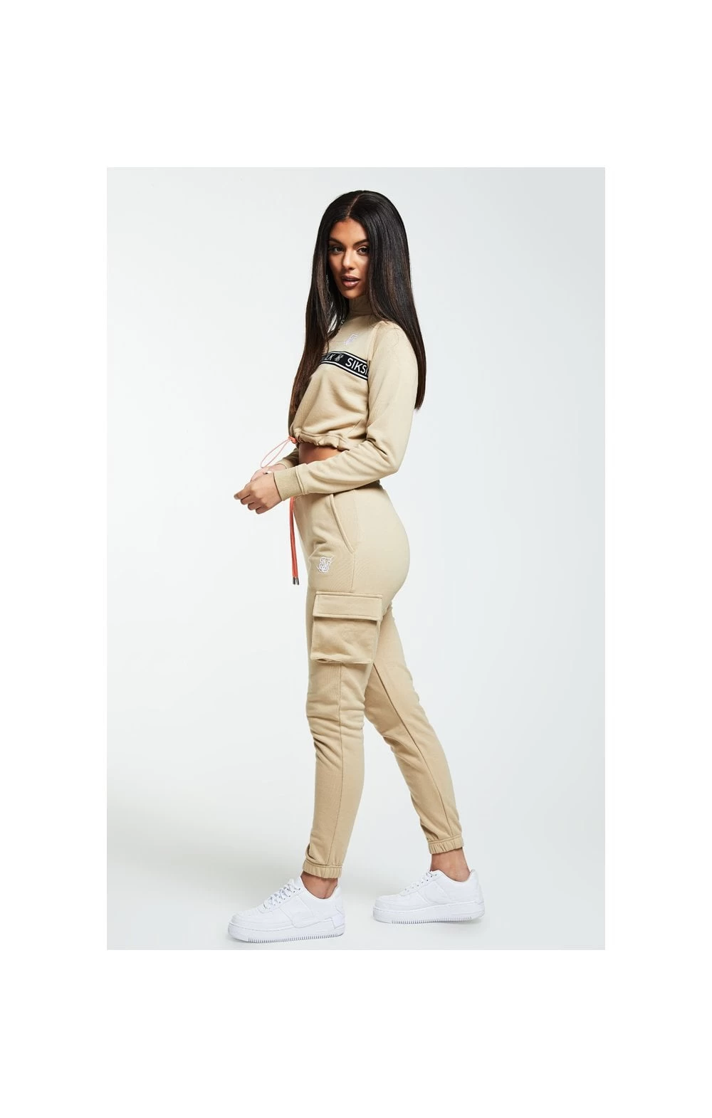 SikSilk Tape Funnel Crop Sweat – Stone & Coral