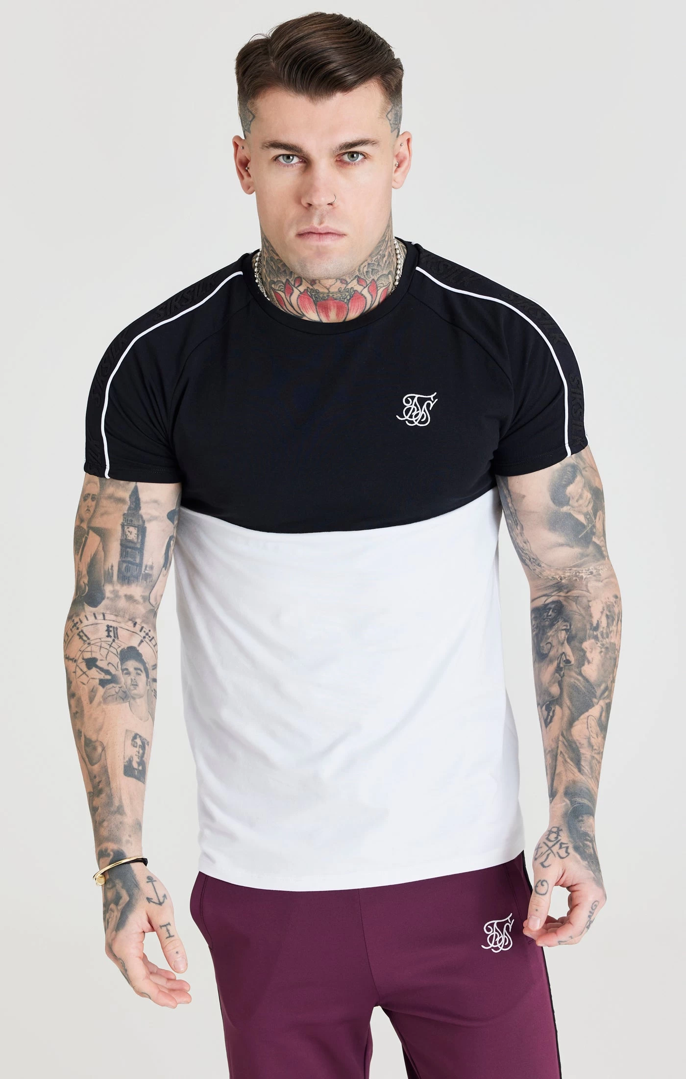 SikSilk Tapes Square Hem Tee – Black & White Tee