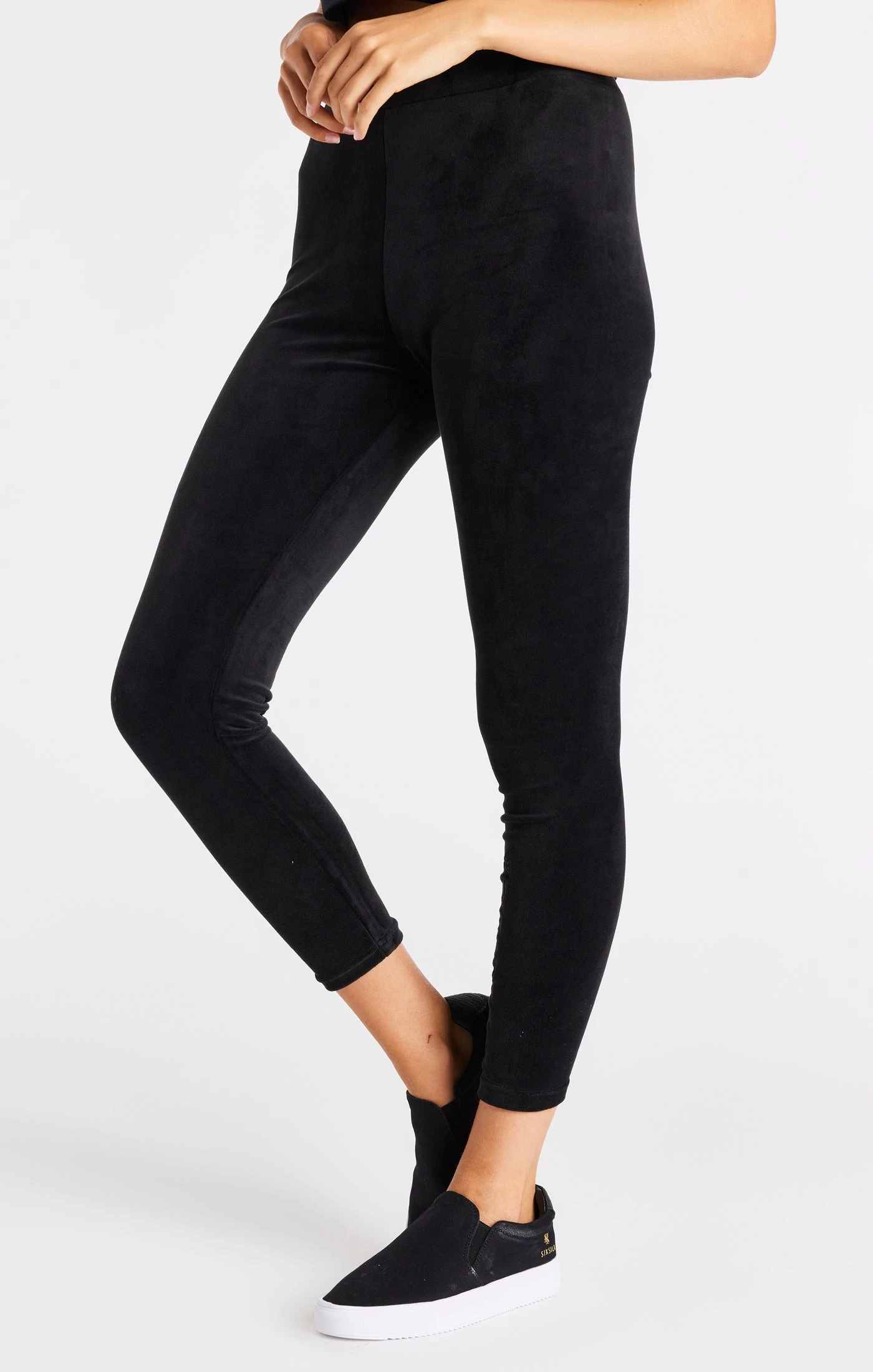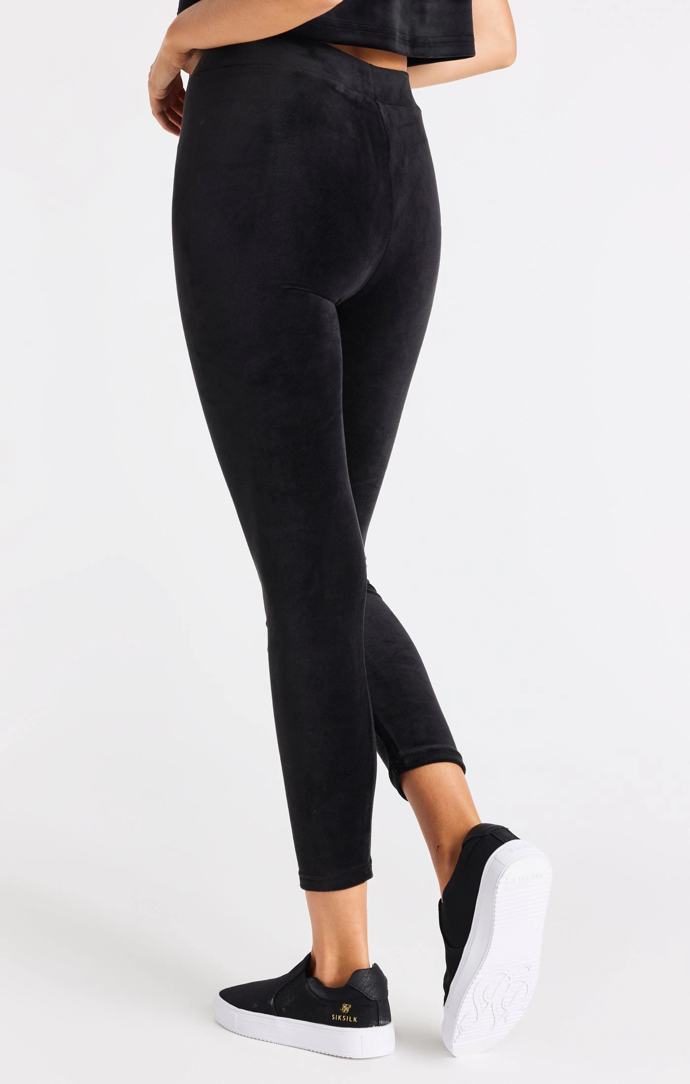 SikSilk Velour Embroidered Leggings – Black